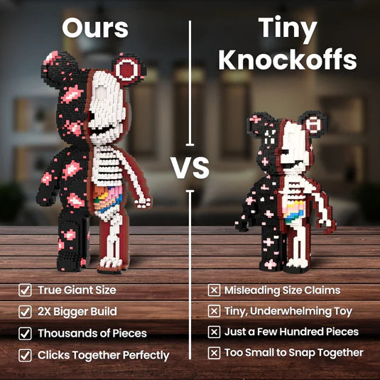 Die aus hochwertigen Materialien gefertigten Ted Bricks™ -Teile passen perfekt zusammen und behalten ihre Form. Ihr Hase bleibt jahrelang stabil und farbenfroh, und die Farben verblassen nicht.