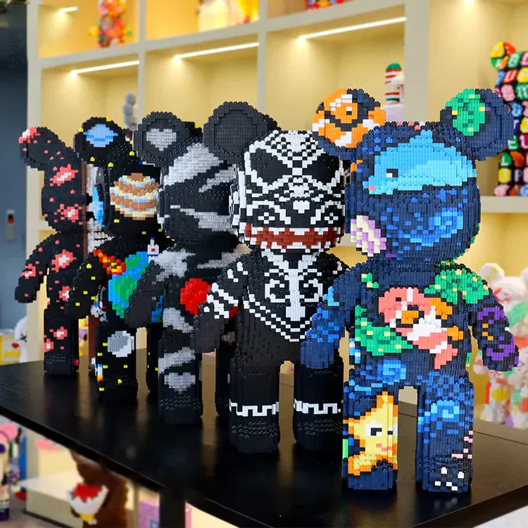 Diese riesigen, aus Ziegelsteinen gebauten Bären bestehen aus über 3600 Teilen und erreichen eine Endhöhe von etwa 47 cm (18 Zoll).